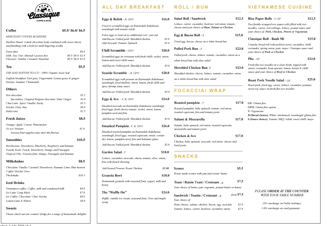 Welcome to Classique Cafe, a hidden gem nestled in the charming town of Bairnsdale, VIC. This delightful cafe offers a fusion of vibrant flavors and a cozy atmosphere that beckons both locals and travelers alike. Whether you're stopping in for a quick coffee or indulging in a leisurely meal, Classique Cafe promises an experience that will tantalize your taste buds.